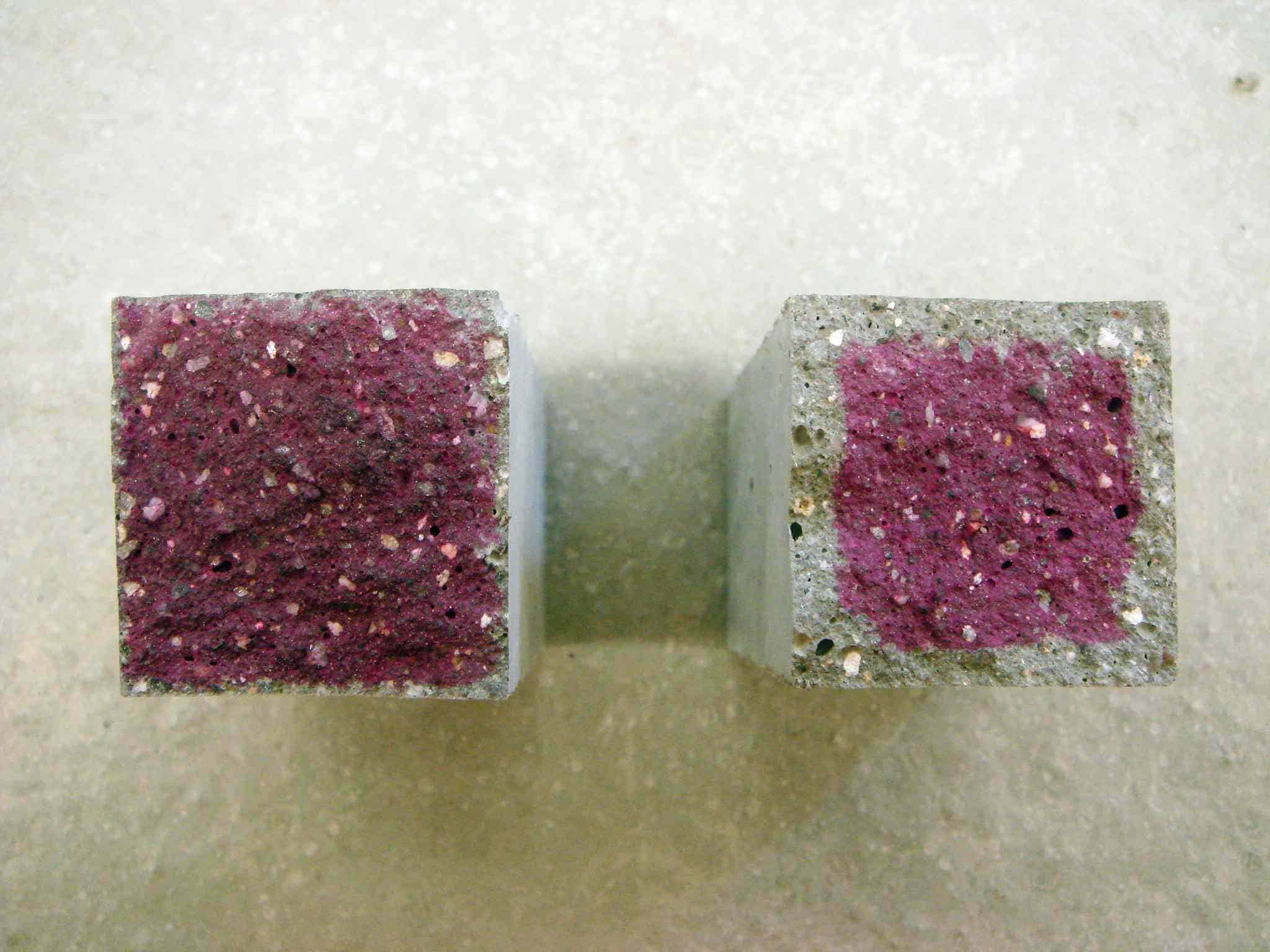 Carbonation: A solution called Phenolphthalein is used to indicate levels of alkalinity which triggers the corrosion process. The substance, which is spray-applied, turns pink when it contacts alkaline in conc